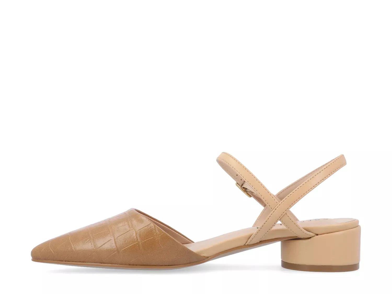 Привлеките к себе внимание в туфлях Brynn из коллекции Journee. Силуэт в стиле колорблок с тонким узором из крокодиловой кожи, неподвластный времени заостренный носок и блочный каблук придают трендовую привлекательность этой туфли-лодочку с ремешком на щиколотке.