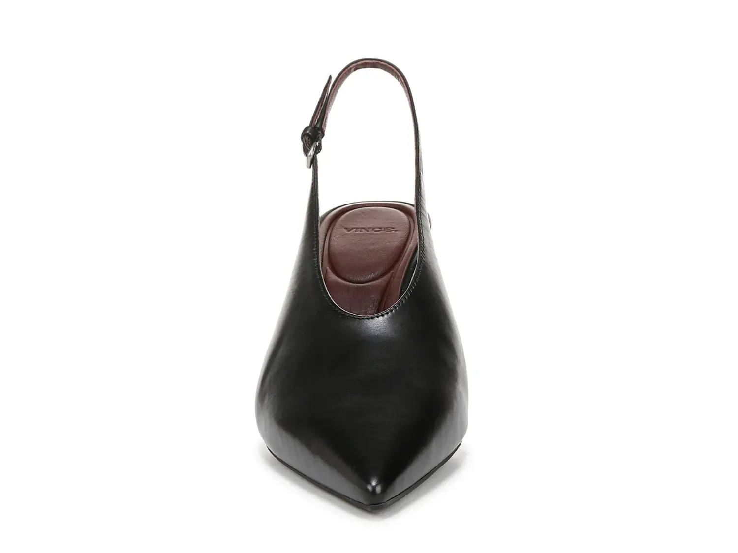Поднимите свой образ на новый уровень с насосом Devi от Vince. Гладкий кожаный верх с рейтингом LWG Gold, регулируемая застежка на ремешок с пряжкой и удобная мягкая стелька делают эту слингбек комфортной. С гладким заостренным носком и блочным каблуком, которые добавляют модный штрих.