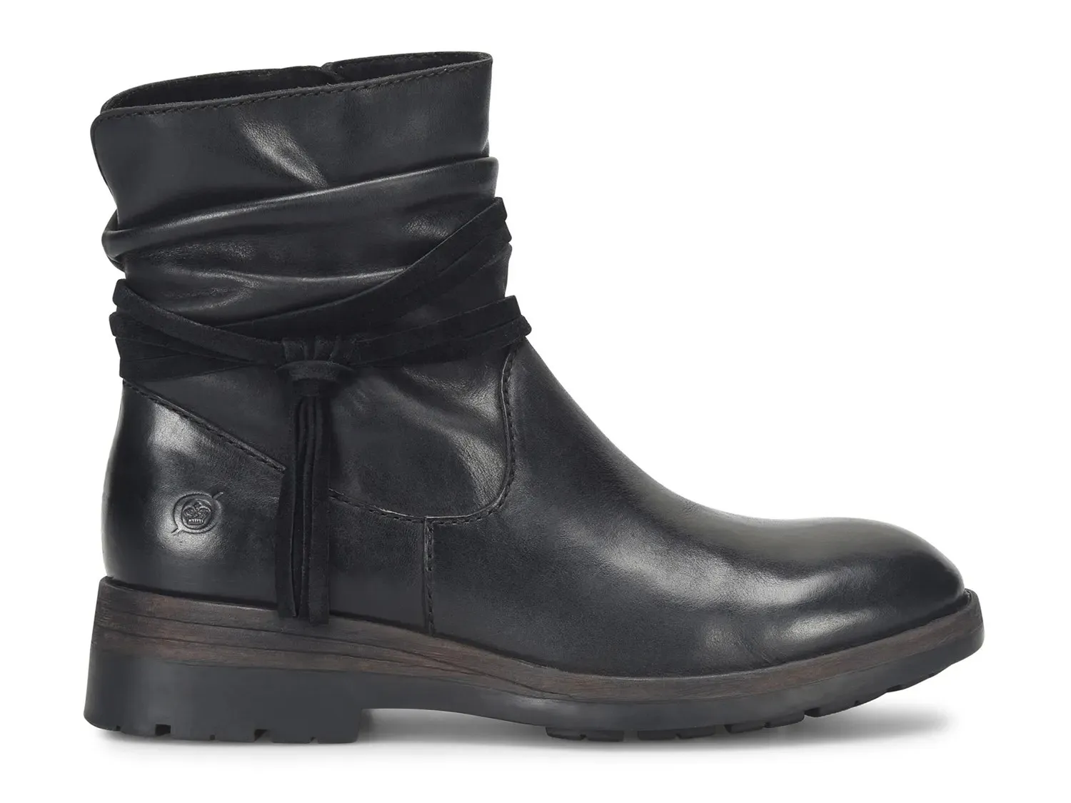 Почувствуйте сильную атмосферу мотоциклов ботинок Mollie от Born. Ботильоны на молнии имеют плюшевый верх из кожи с напуском, привнося женственность в ваш осенне-зимний профиль. Резиновая подошва обеспечивает высокое сцепление и легкость.