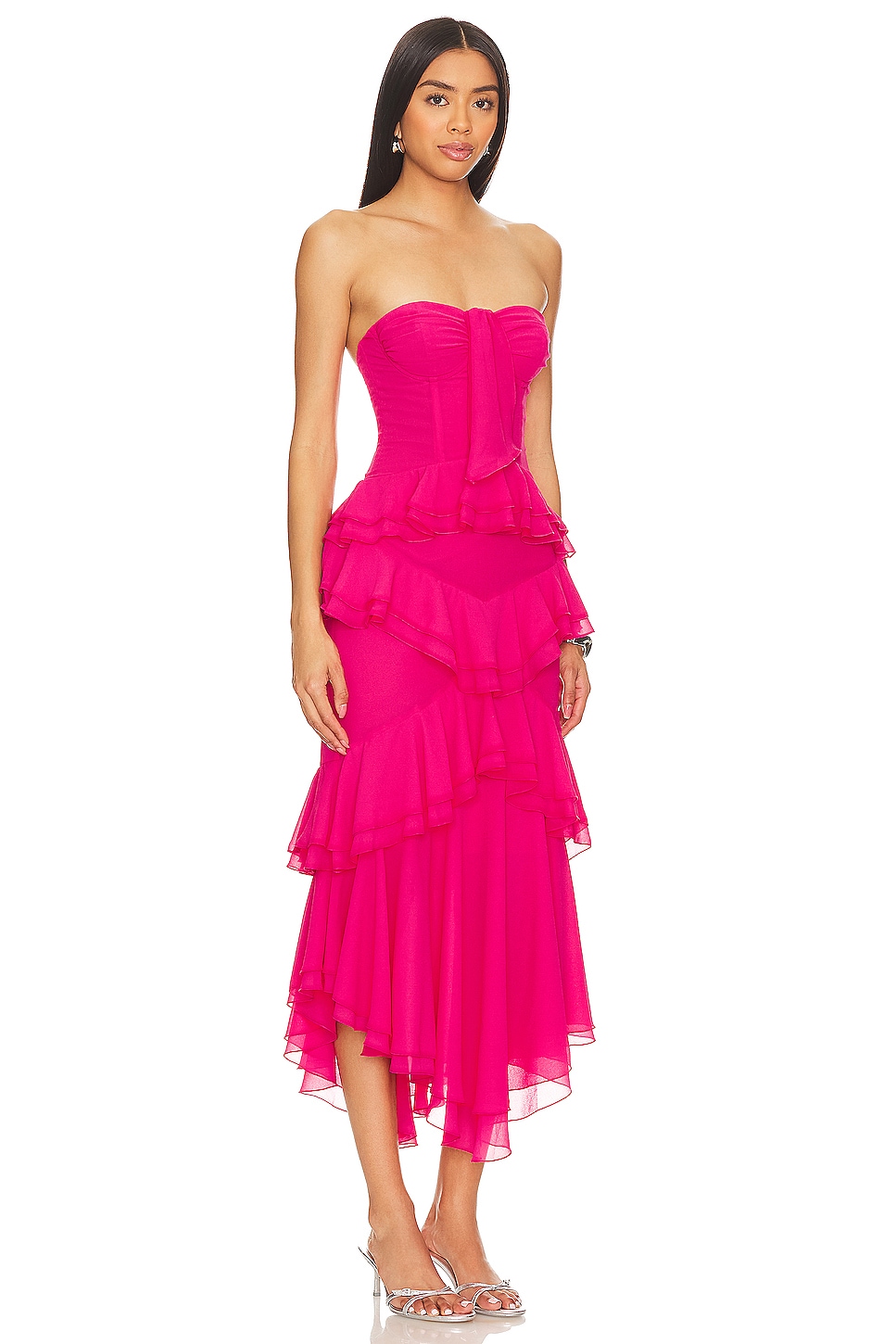Это завораживающее изделие является воплощением романтического очарования и вечной элегантности. Дизайн без бретелек демонстрирует ваши плечи и декольте, в то время как лиф в стиле корсета стягивает вашу талию, создавая привлекательный силуэт. Независимо от того, идете ли вы на свадьбу или романтическое свидание, платье Sarita от NBD заставит вас почувствовать себя королевой бала.