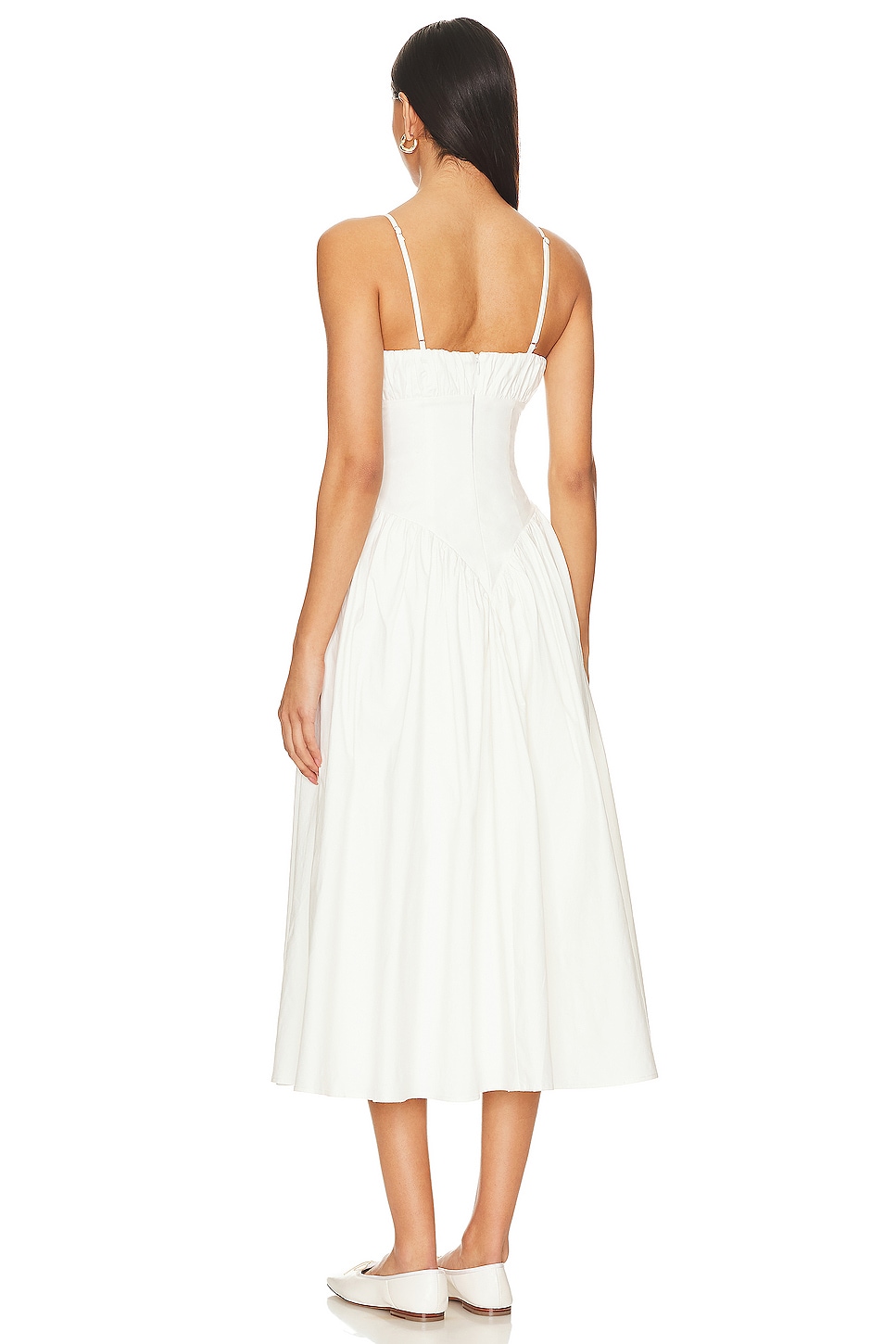 Погрузитесь в девичье очарование с платьем миди Soft White Austin от MAJORELLE. Плотная поплиновая ткань добавляет структуру, идеально подходит для цветочных полей. Достаточно универсальное, чтобы носить как нарядно, так и повседневно, это платье излучает непринужденную элегантность.
