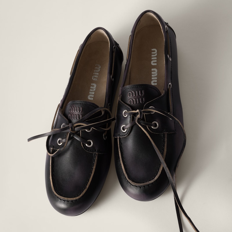 Мокасины из стираной кожи без подкладки Miu Miu, черный