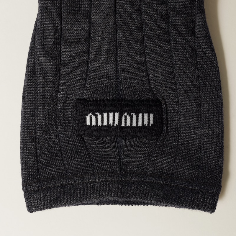 Эти высокие носки из ребристого шелкового трикотажа, вдохновленные подиумом, отличаются уникальным дизайном, который привнесет культовый и экспериментальный штрих униформы Miu Miu во все ваши образы.