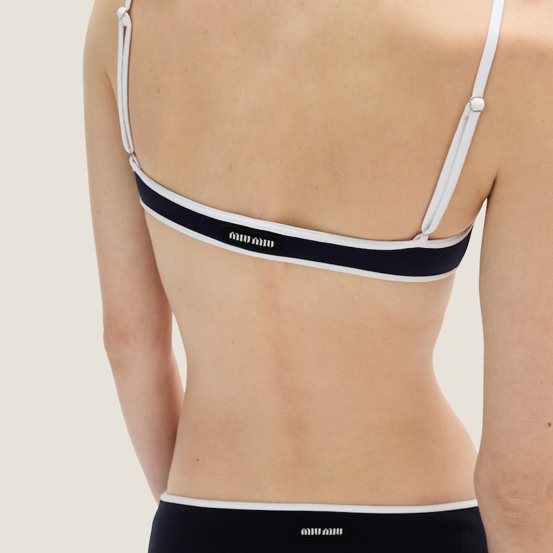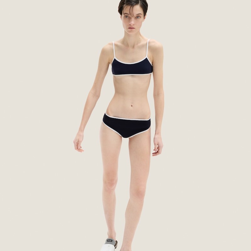 Этот купальник из технической пряжи, вдохновленный моделями 1920-х годов, воплощает дух современной активной одежды и идеально сочетается с классической одеждой, создавая уникальные и экспериментальные комбинации.