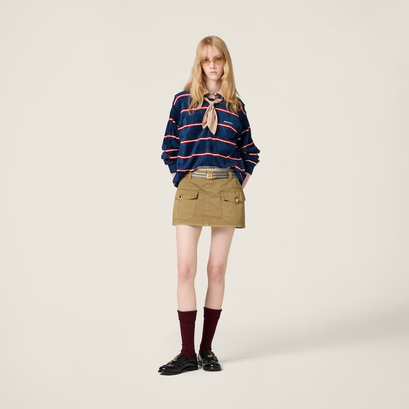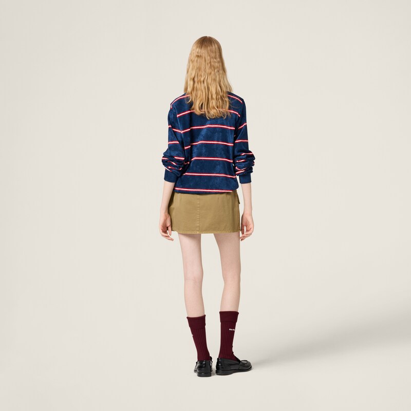 Полосатый рисунок этой рубашки поло отражает игривый дух Miu Miu и отсылки к стилю преппи, а свободный крой подчеркивает ее стиль жизни.