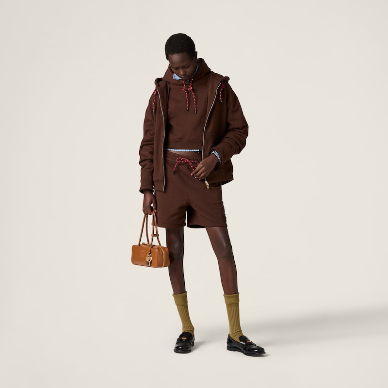 Шорты из хлопкового флиса Miu Miu, коричневый