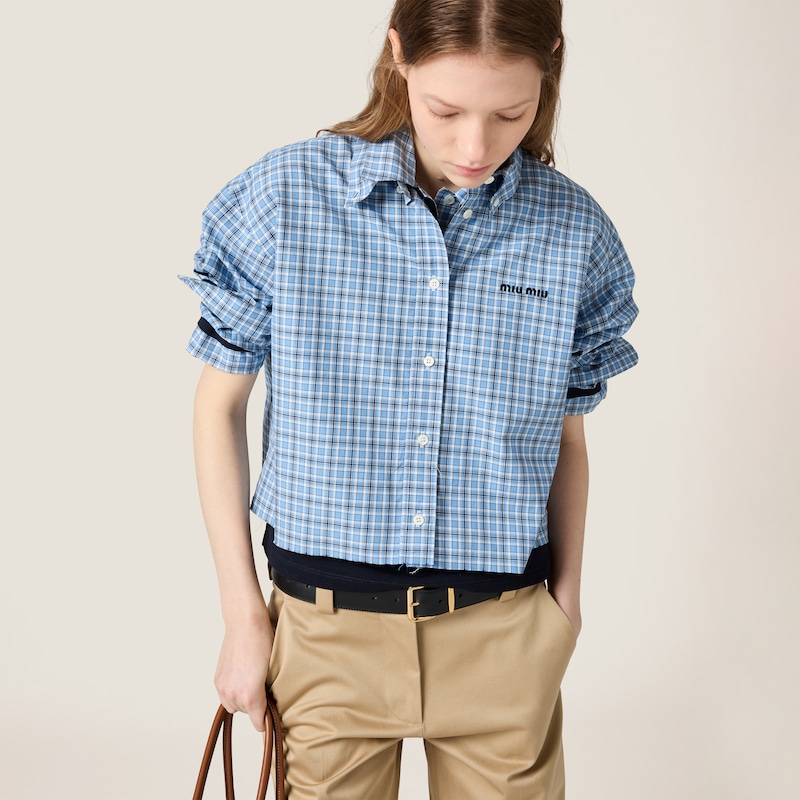 Клетчатая поплиновая рубашка Miu Miu, синий