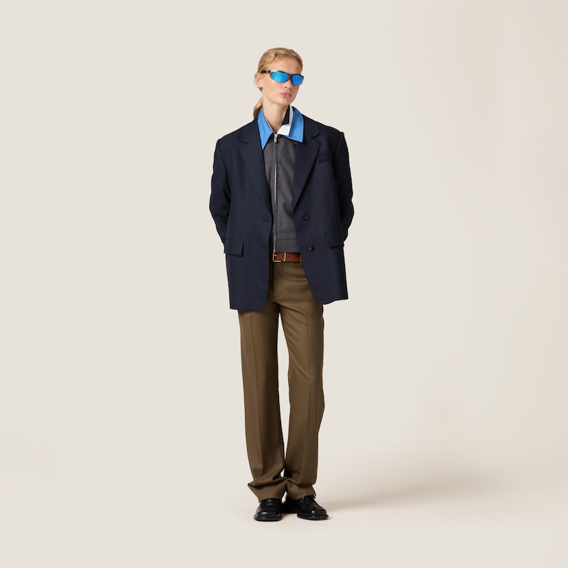Играя с классическими фасонами и цветами, эти брюки из габардина переосмысливают культовую модель в современном и смелом стиле Miu Miu.
