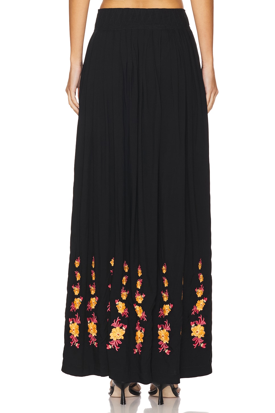 Легкая поплиновая ткань с вышитыми цветами по подолу