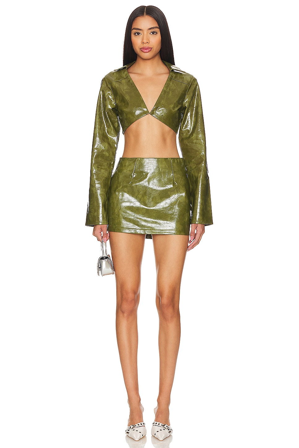 Осмелитесь выделиться с юбкой из искусственной кожи Ethel superdown в оливковом цвете. Эта мини-юбка из яркой искусственной кожи станет изюминкой вашего вечернего выхода. Подчеркните свой стиль, сочетая ее с подходящей курткой, чтобы создать образ, который привлечет внимание. Приветствуйте в эти выходные образ модели, которая не будет работать на работе.