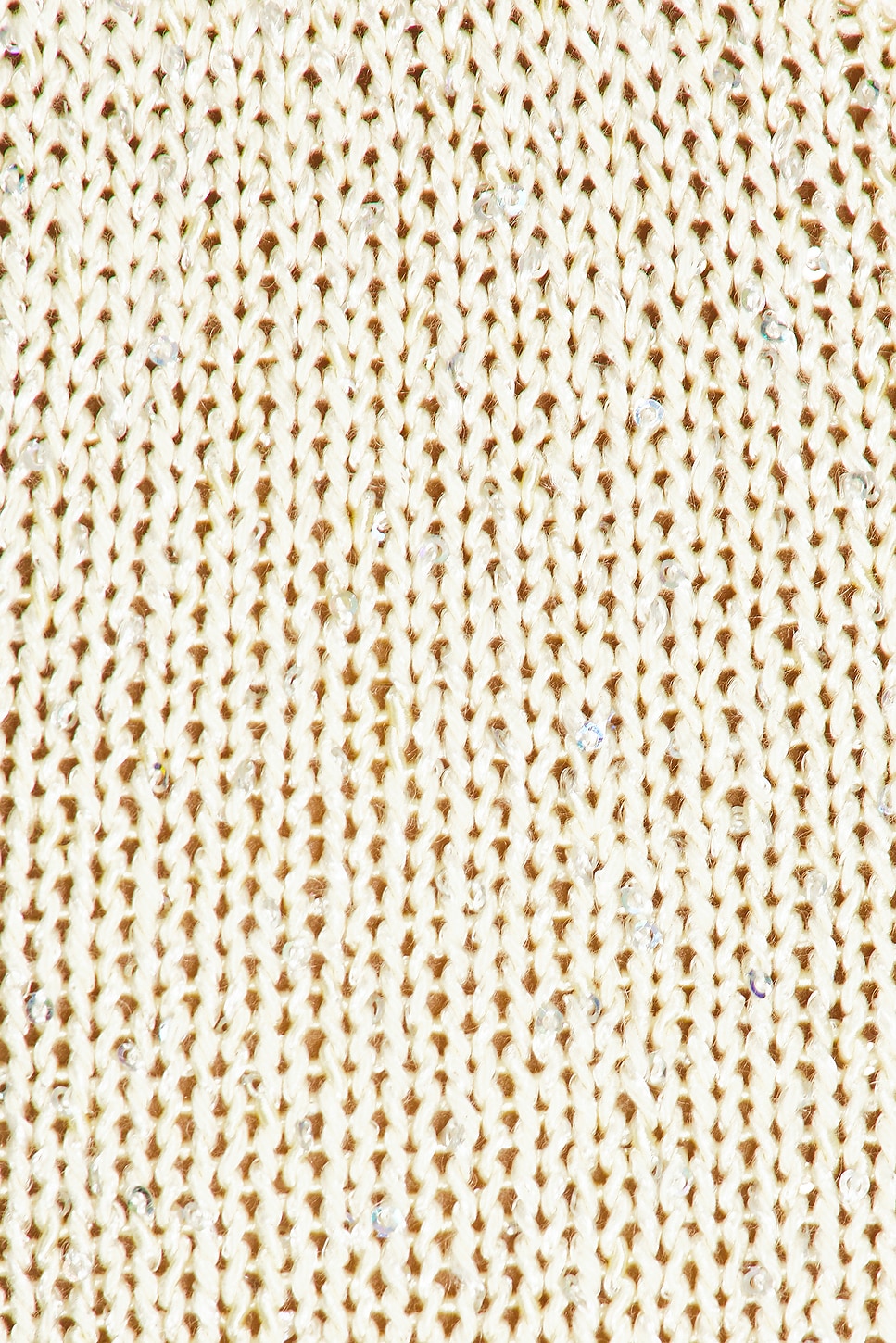 Ткань средней плотности с ажурной вязкой, украшенная переливающимися мелкими пайетками по всей длине