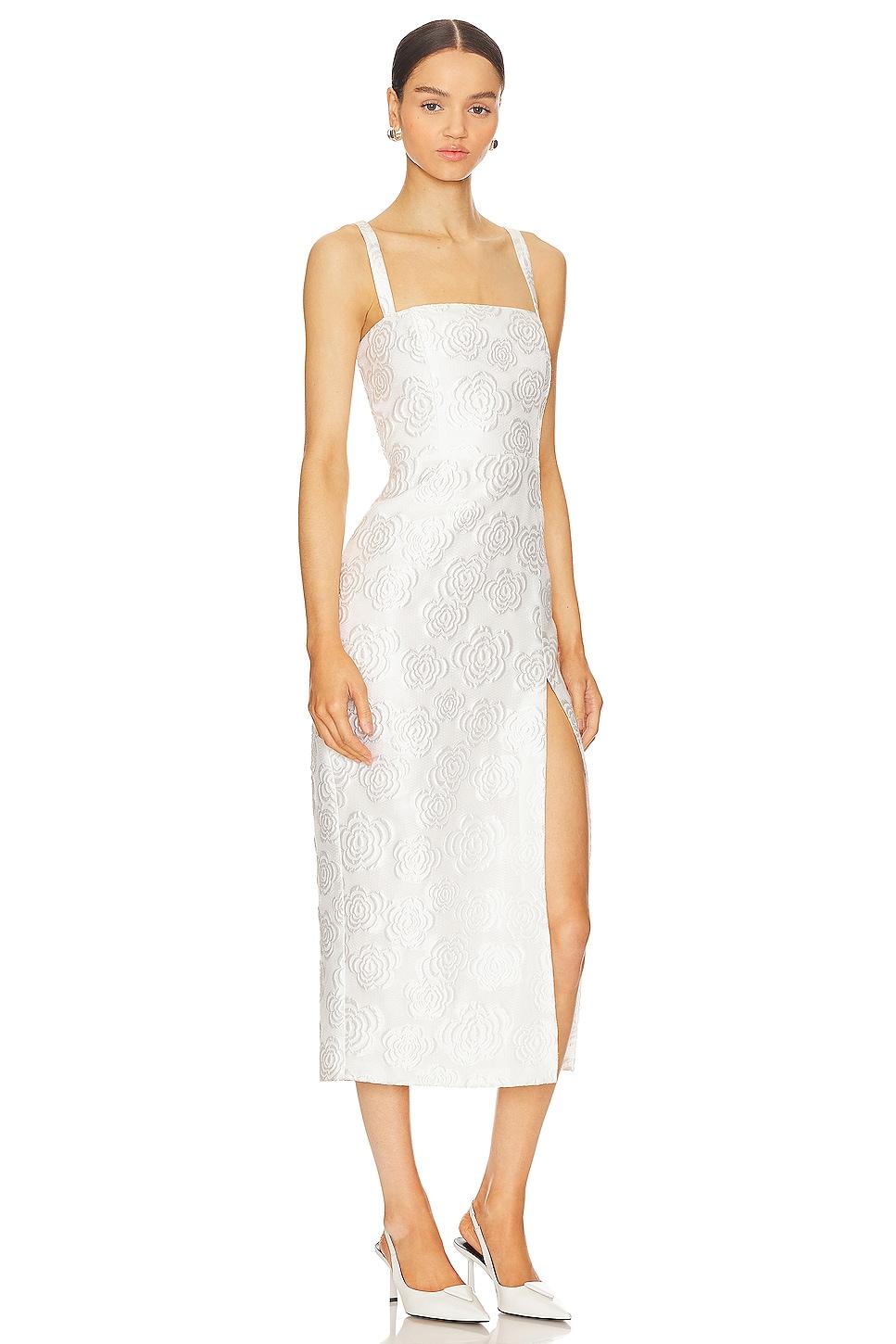 Неподвластное времени всегда оставляет впечатление. Встречайте свой первый выбор элегантности — платье Amanda Uprichard Monica в белом цвете. Классический силуэт без рукавов в сочетании со скромным разрезом сбоку излучает сдержанное цветочное очарование в жаккардовой ткани. Подчеркните свои официальные случаи и сделайте неизгладимое заявление.
