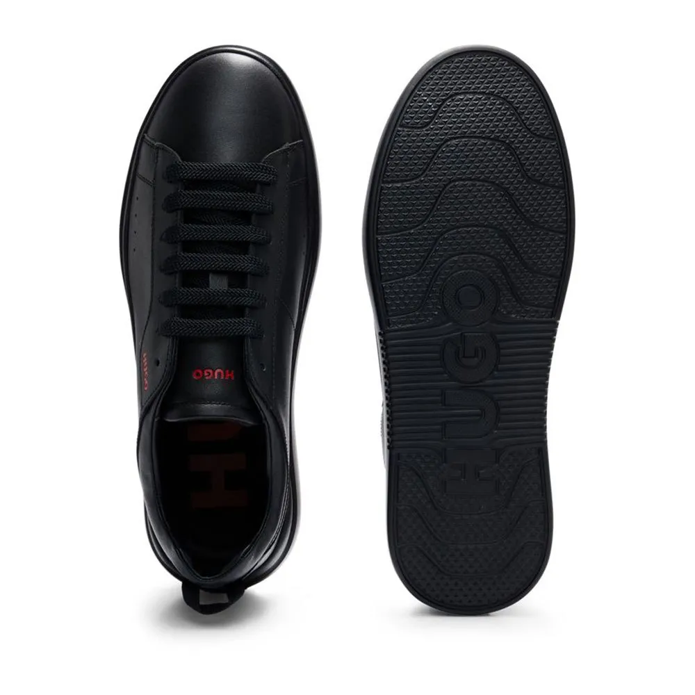 Современные низкие кроссовки cupsole из мягкой кожи от Hugo, включая фирменный красный брендинг на четверти.