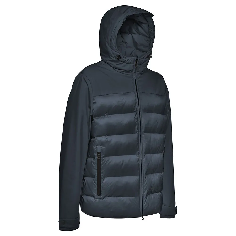 Современный образ с эстетикой, вдохновленной отдыхом на природе, от Sapienza, короткой утепленной куртки для мужчин с капюшоном и затягивающимся шнурком по низу. Продуманная до мельчайших деталей, она выполнена из смеси эластичного полиэстерового твила и переработанного стеганого нейлона с водонепроницаемой ветрозащитной отделкой.