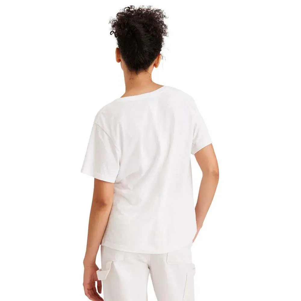 Мы создали эту незаменимую футболку с глубоким V-образным вырезом простого силуэта, которую вам захочется носить целый день.