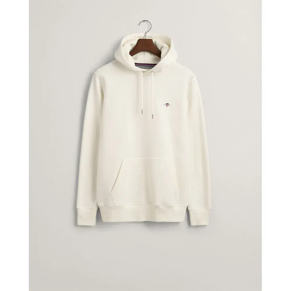 Она дополнена карманом-кенгуру, капюшоном на шнурке, ребристым подолом и манжетами, а также небольшой вышитой на груди графикой в виде щита GANT.