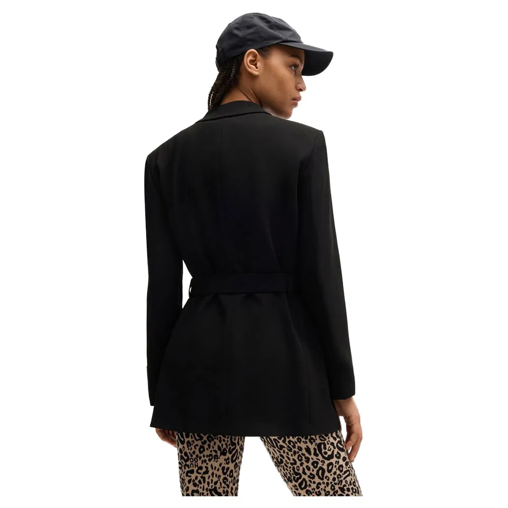 Длинный жакет с прорезными карманами от HUGO Womenswear. Изделие свободного покроя с пряжкой на поясе и запахом спереди.