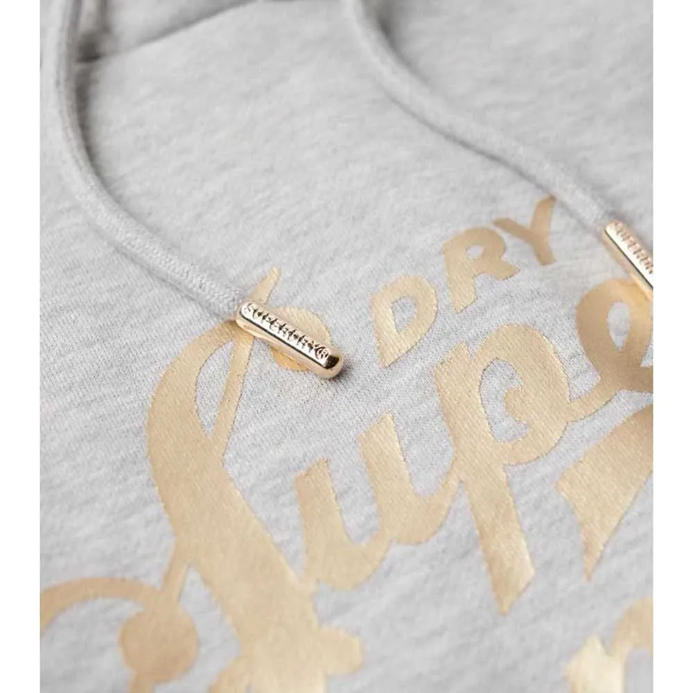 Добавьте роскоши в каждый удобный наряд, который вы наденете в этом сезоне, с нашим платьем с капюшоном Luxe Metallic Logo.