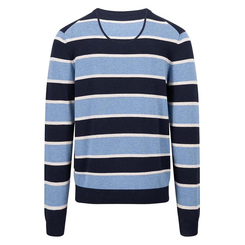 Наш повседневный полосатый хлопковый джемпер с круглым вырезом горловины — это идеальное сочетание классического стиля и современного комфорта.