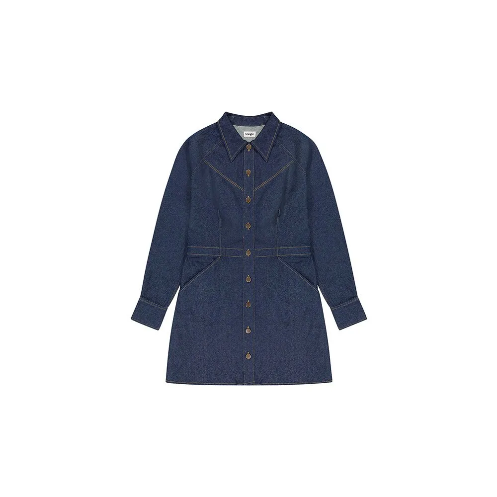 Облегающее платье Slim Fit с облегающим силуэтом, подчеркивающим фигуру, черпает вдохновение из нашего наследия американского Запада с его застежкой на пуговицы спереди, манжетами на пуговицы и заостренным воротником.