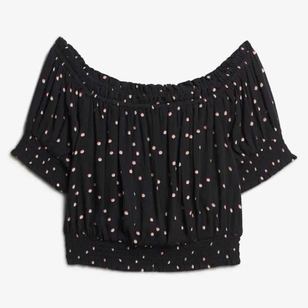 Наш укороченный топ с короткими рукавами и сборками — это простой способ улучшить свой образ, привнеся в ваш стиль легкий богемный стиль.