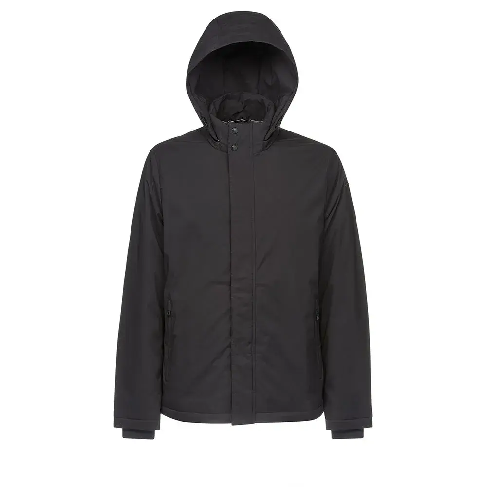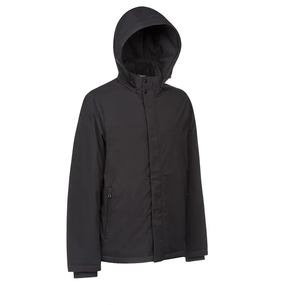 Эта функциональная куртка из мягкого матового полиэстера оснащена тремя внутренними карманами, а также защитным капюшоном, который можно отстегнуть и отрегулировать с помощью затягивающегося шнурка.