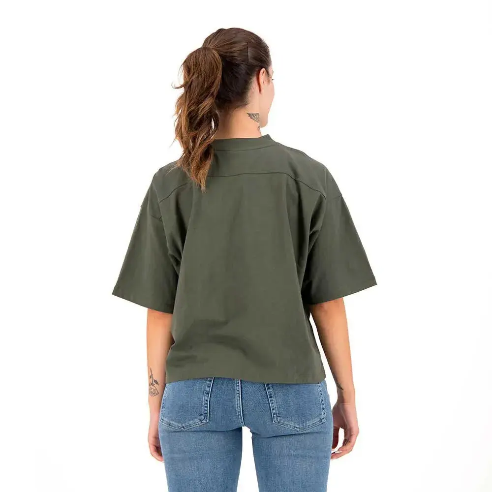 Свободный крой — преувеличенный и очень свободный, позвольте вашему стилю свободно течь. Ребристый воротник с круглым вырезом, короткие рукава, печатный брендинг, тисненый логотип Code.