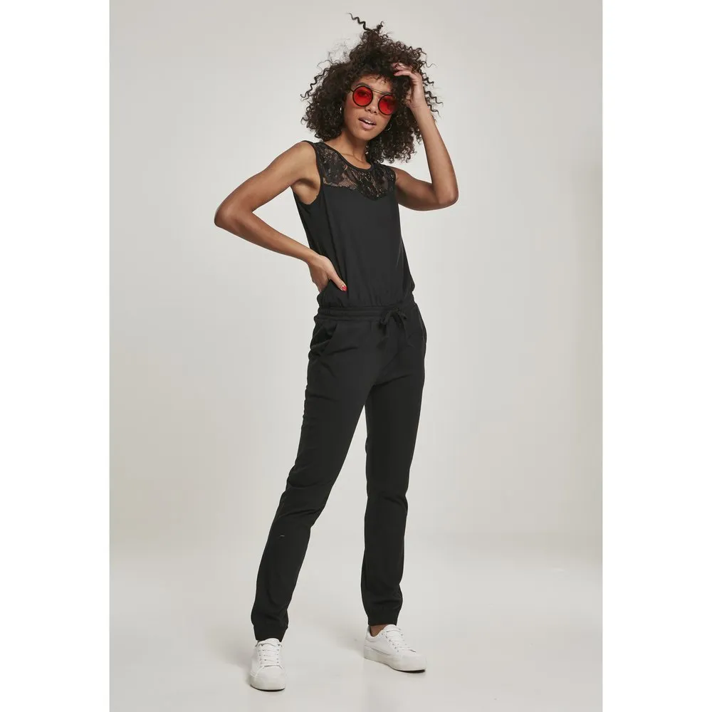 Спортивный, сексуальный, женственный: этот кружевной комбинезон сочетает в себе лучшее из нескольких модных миров и является универсальной вещью, которую можно добавить в вашу коллекцию одежды. Уличная одежда в лучшем виде! Спортивная нижняя часть обеспечивает вам свободную посадку, боковые карманы и талию на шнурке выше бедер. Кроме того, пояс также придает элегантной верхней части комбинезона изысканную сборку. Безрукавный крой с нежными кружевными вставками над вырезом и верхней частью спины прост и элегантен. Задняя молния на воротнике практична и завершает образ. Oberstoff 1: 95% Baumwolle 5% Elasthan, Strech Jersey, 225 GSM Oberstoff 2: 91% Polyamid 9% Elasthan, Lace, 140 GSM