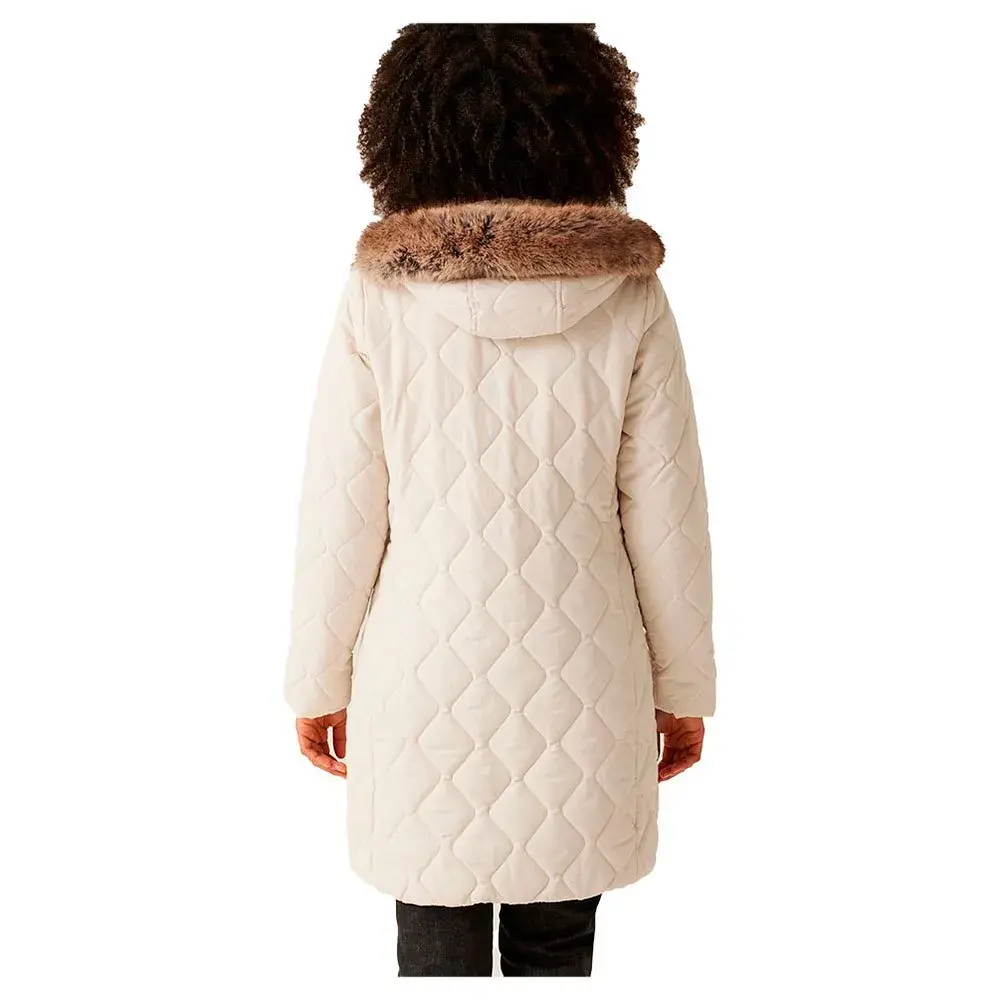 - Приталенный капюшон с регуляторами и отделкой из искусственного меха