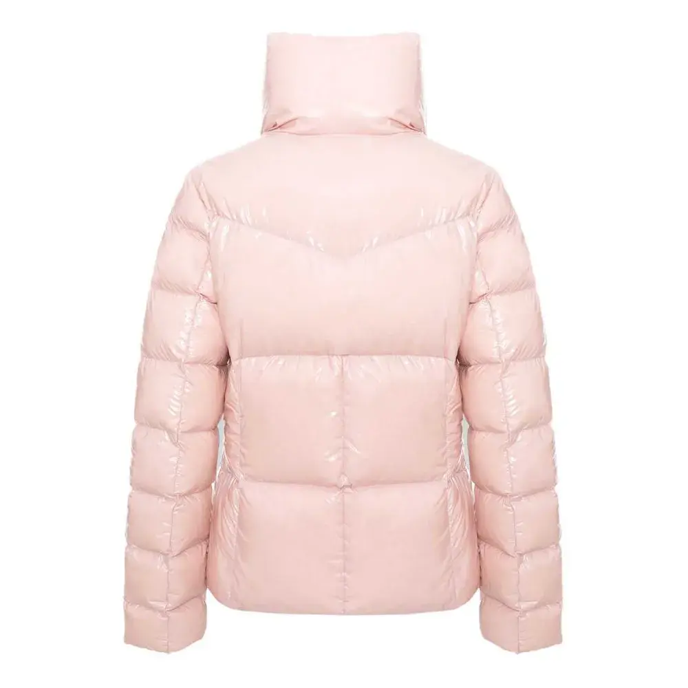 Женская куртка без капюшона из суперглянцевой лакированной ткани с водоотталкивающей обработкой. Натуральная перьевая подкладка. Эта сверкающая пуховая куртка со смешанной простежкой, придающей ей решительный и отличительный характер, необычна и весела. Большой высокий воротник-стойка идеально подходит для противостояния жестким зимним температурам.