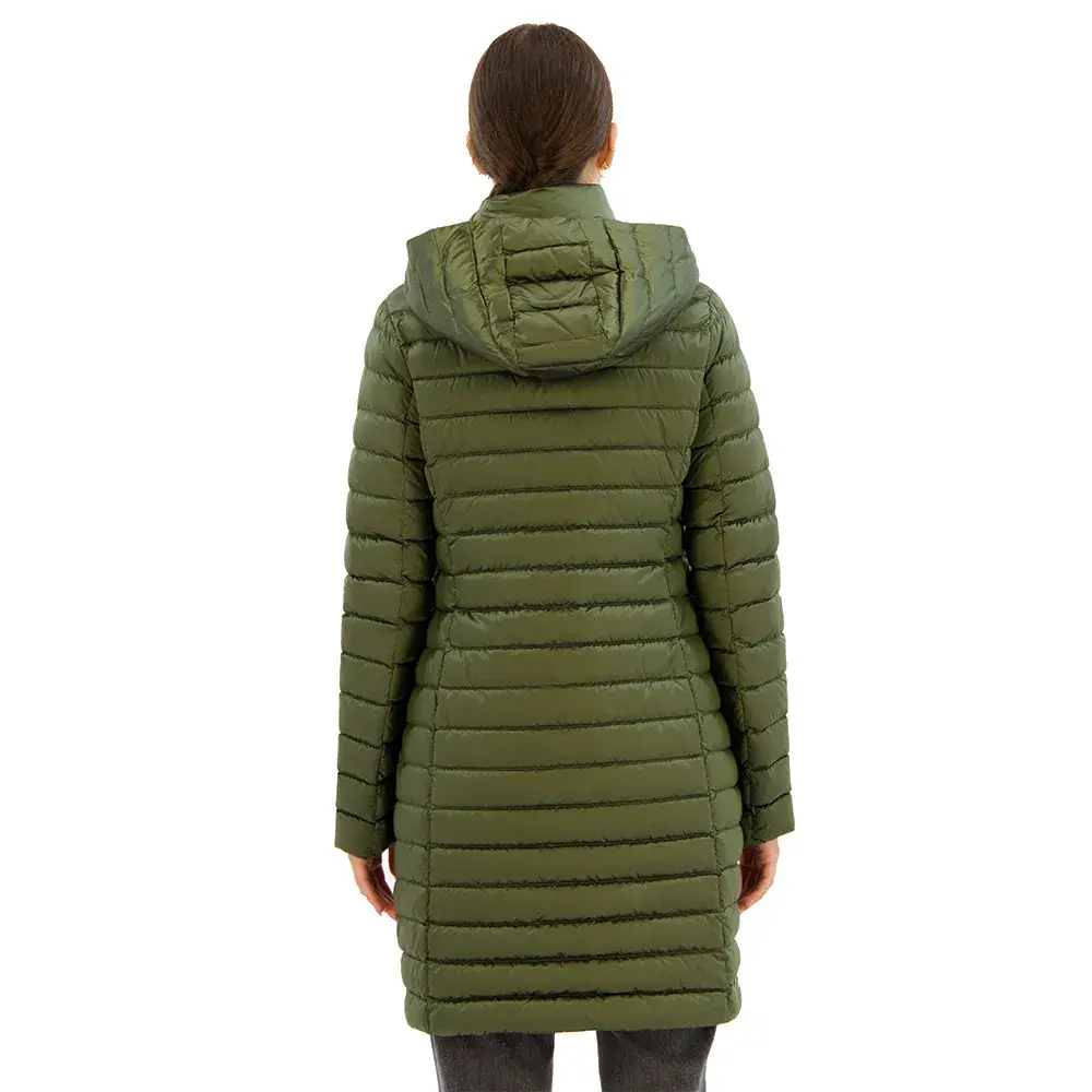 Женская куртка со съемным капюшоном, средней длины, из переработанной ткани с переливающимся эффектом и водоотталкивающей обработкой. Утеплена легким натуральным пухом. Незаменимая вещь, слегка приталенная на бедрах, с обычными стегаными оборками. Средней плотности, подходит для осеннего сезона и идеально дополнит любой ваш образ, будь то для офиса или отдыха. Переливающийся эффект придает сияние культовой куртке Colmar Originals 100 грамм.