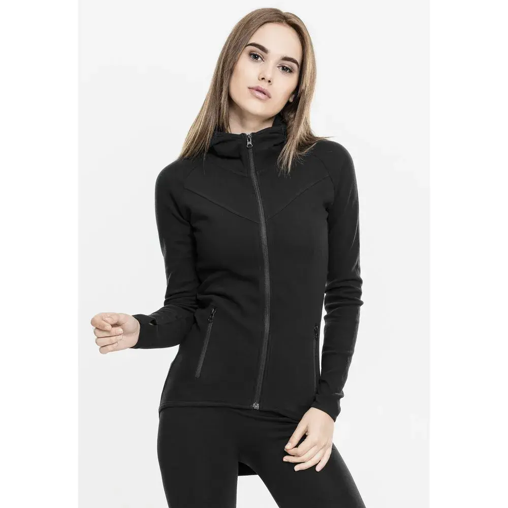 Женская спортивная толстовка с капюшоном Interlock от URBAN CLASSICS — ваша новая любимая вещь! Она впечатляет своим простым и спортивным дизайном: облегающий крой, эргономичный капюшон, отверстия для больших пальцев и удлиненная спинка с закругленным краем. Высококачественная ткань Interlock очень мягкая и удобная в носке. Oberstoff 1: 95% Baumwolle 5% Elasthan, Peached Interlock, 300 GSM