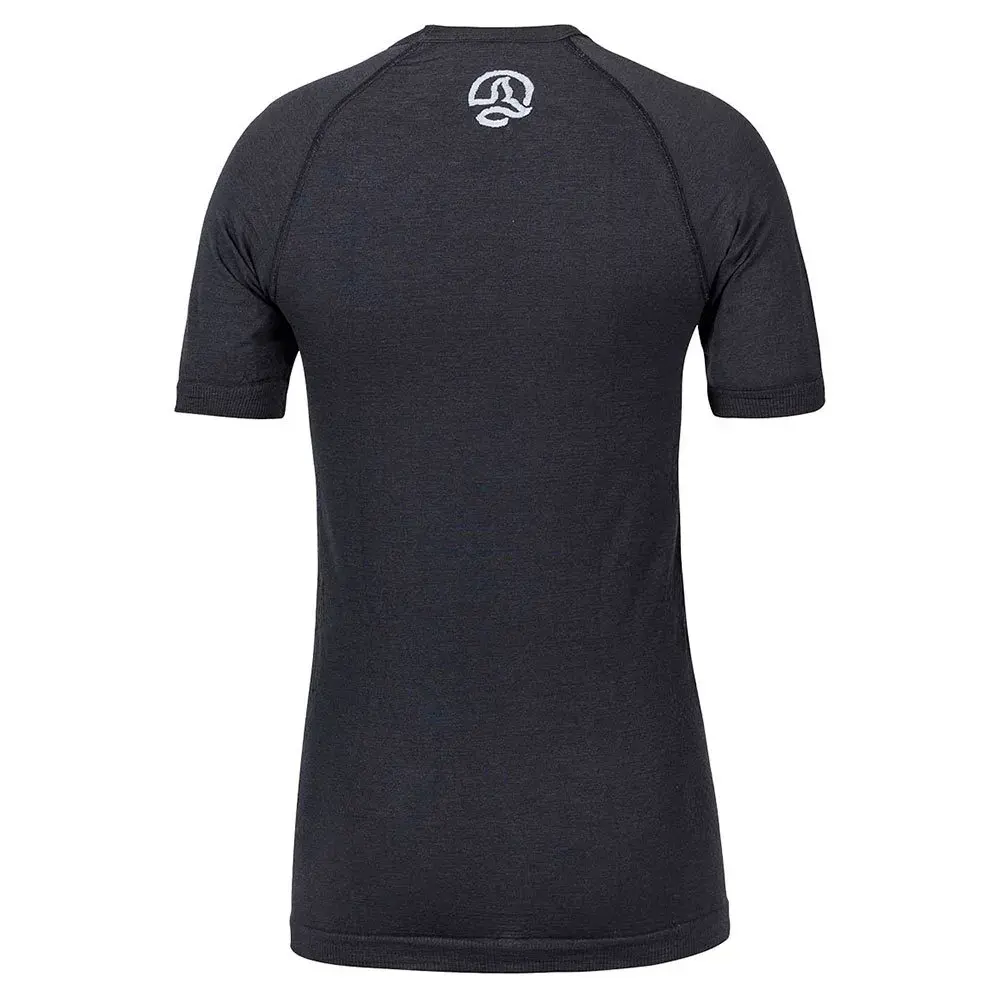 Теплая, дышащая и бесшовная футболка первого слоя с короткими рукавами, изготовленная из смеси Tencel и шерсти, контактирующей с кожей, и эластана, покрытого переработанным полиамидом Seacycle снаружи.