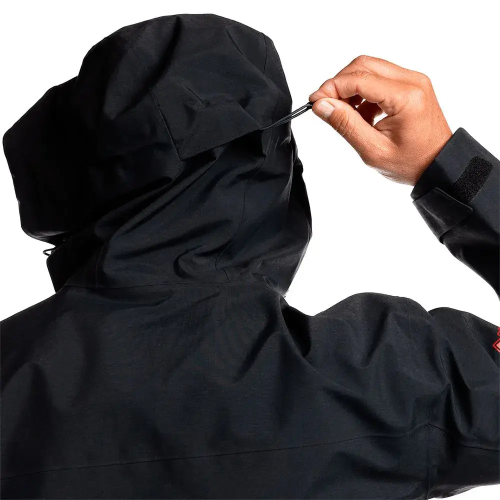 Несъемный капюшон - Регулировка капюшона по лицу и объему - Герметичные швы - Водонепроницаемая и дышащая мембрана - Регулируемые манжеты на липучках - Регулируемый подол с эластичным шнуром и фиксаторами - Передние карманы с клапанами на молнии.