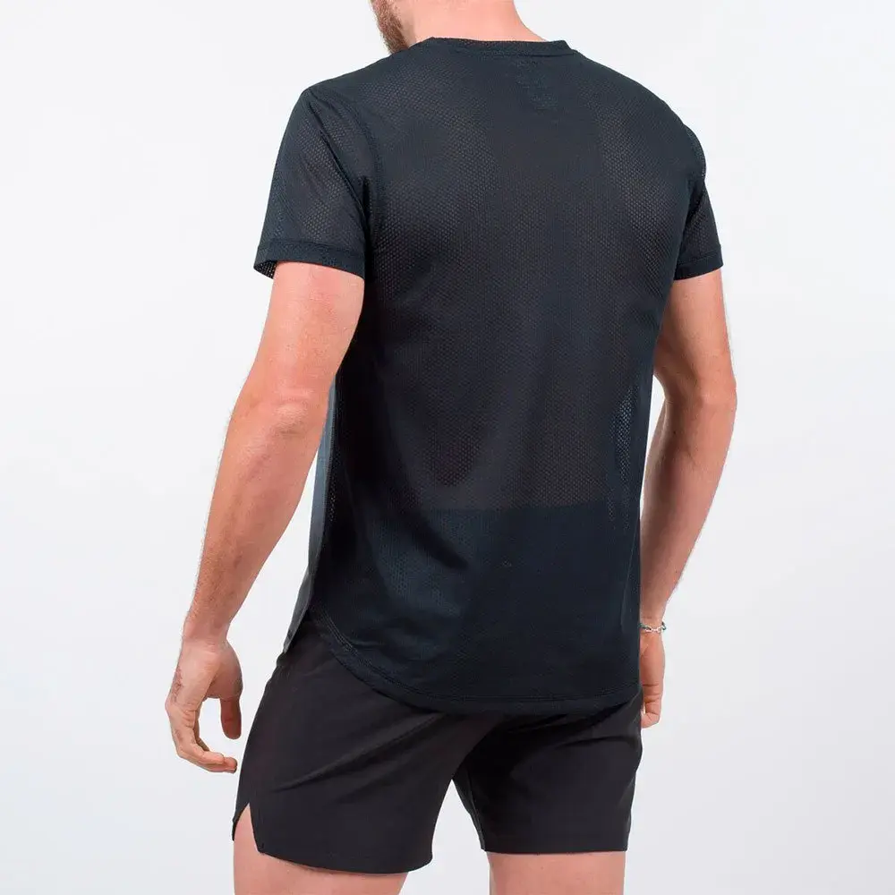 Техническая футболка для бега и мультиспорта в двухцветном черном цвете.