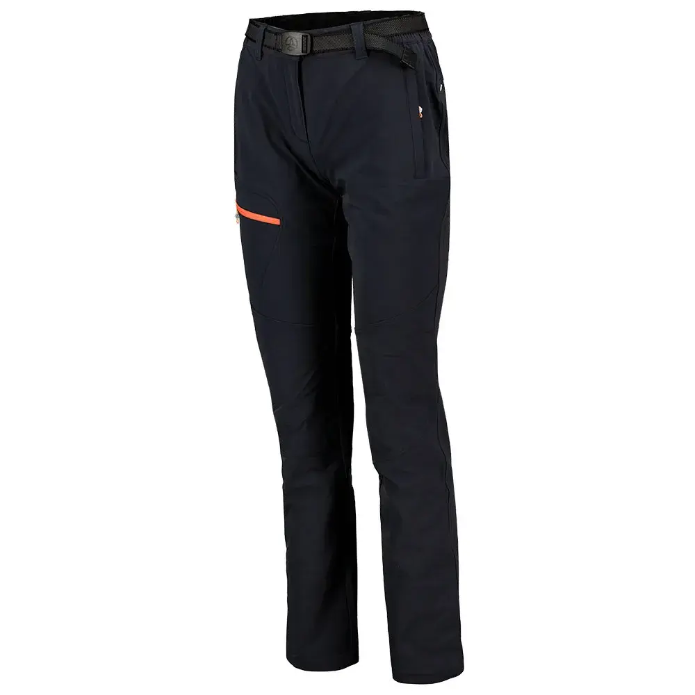 Технические брюки из начесаного биэластичного материала Shellstretch с водоотталкивающей пропиткой DWR (без ПФУ). Они имеют профилированные колени и регулируемые подол с фиксатором-шнурком, а также пояс и три кармана на молниях.