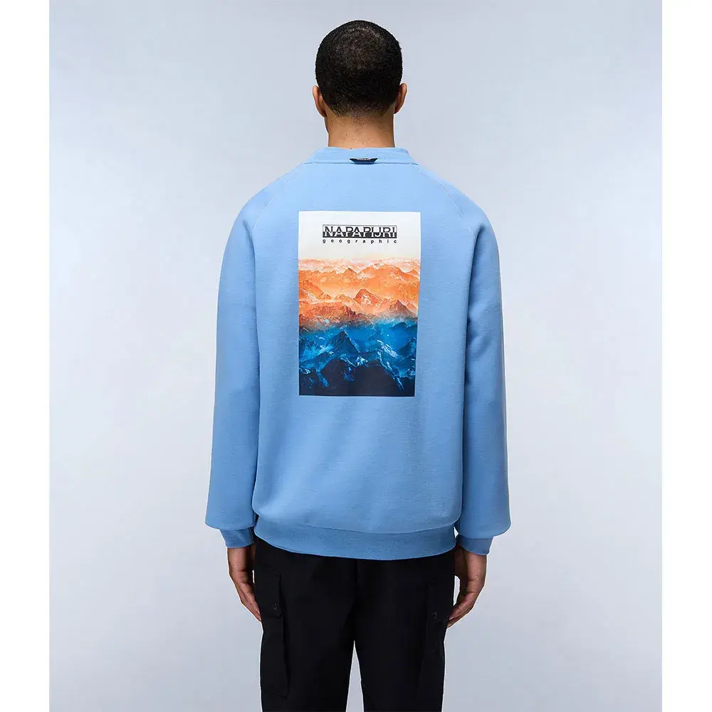 Толстовка Rollin с круглым вырезом, ребристыми деталями и яркой графикой Napapijri на спине и груди представляет собой свободный средний слой, выполненный в основном из хлопка.