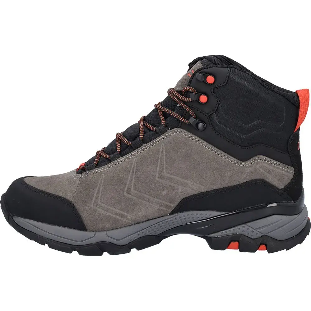 Верх выполнен из замши с активируемой давлением работой на берце, носок и боковины усилены прорезиненными деталями, которые защищают стопу.