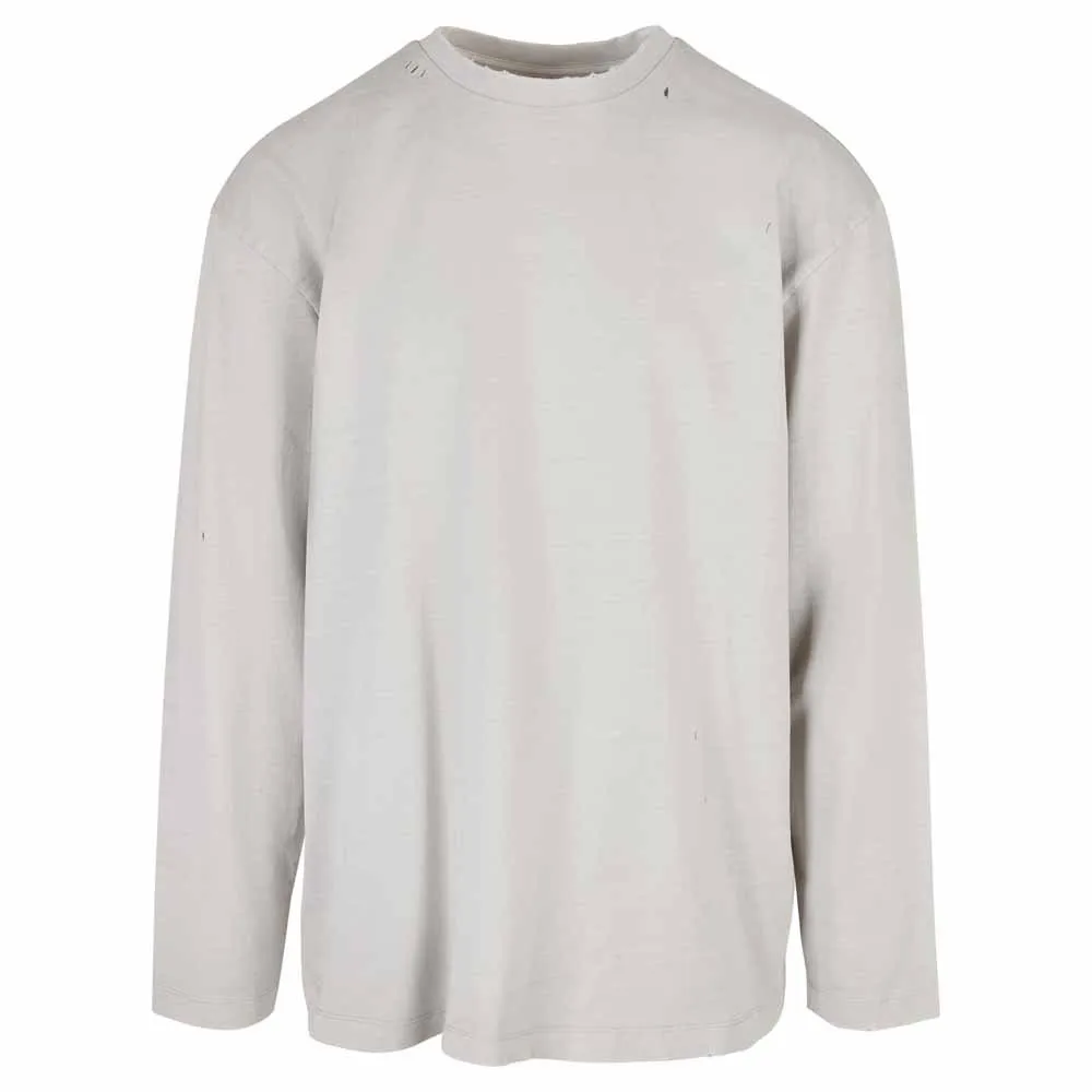 Обеспечивая омовения и разрушенные элементы, мужская рубашка с длинным рукавом излучает максимальную беспечность. Дизайн подчеркивается благородным oversize-кроем со слегка приспущенными плечами. Ее стиль завершается круглым вырезом и частично необработанными краями на вырезе, манжетах и подоле. Длинный рукав изготовлен из одинарного джерси-хлопка, который очень удобен в носке.