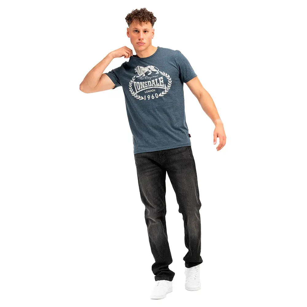 Овальный логотип спереди на крапчатой рубашке с круглым вырезом. На правом рукаве пришита нашивка с изображением флага Великобритании. Лента в области шеи контрастного цвета.
