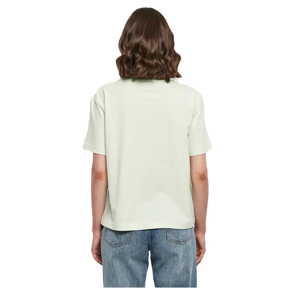 Однотонная женская футболка с короткими рукавами излучает простой и спокойный стиль с повседневным свободным кроем и спущенными плечами.