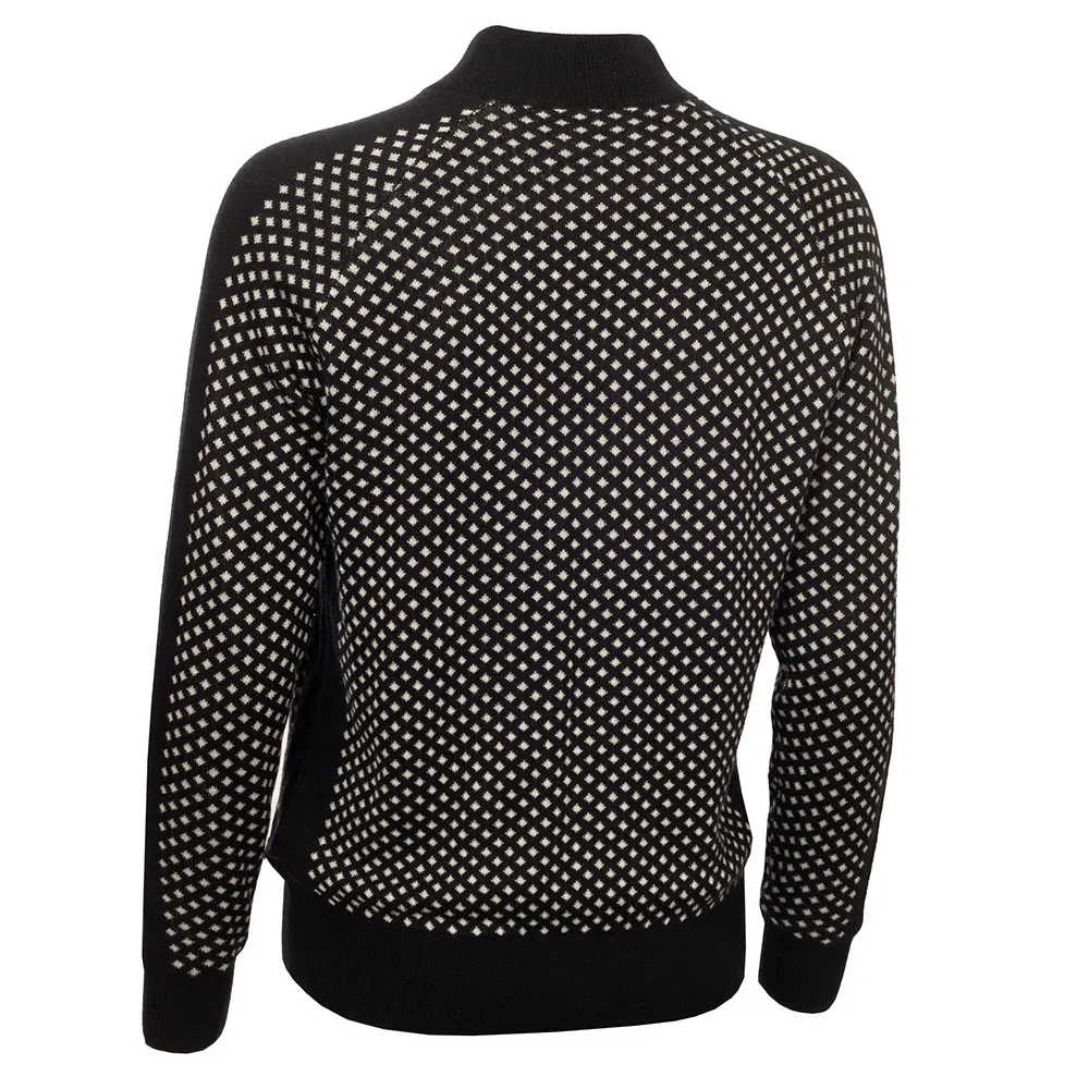 Свитер на полной молнии, полностью на подкладке с двухцветным жаккардовым узором в виде мини-квадратов.