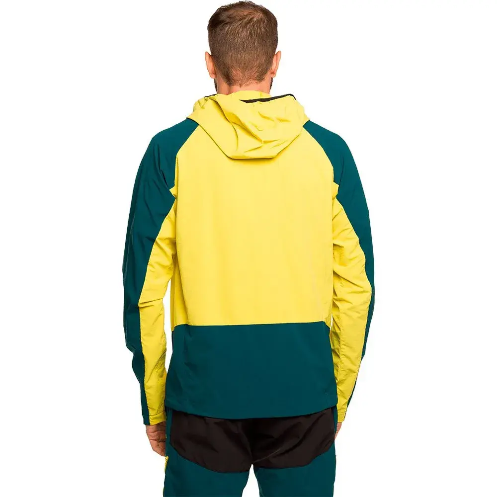 Фиксированный капюшон с эластичной регулировкой - Петля для подвешивания на шее - Рукав реглан - Продольная застежка-молния - Регулируемый подол с эластичным шнуром и фиксаторами - Внутренняя эластичная манжета с отверстием для большого пальца - Передние карманы - Нагрудный карман на молнии.