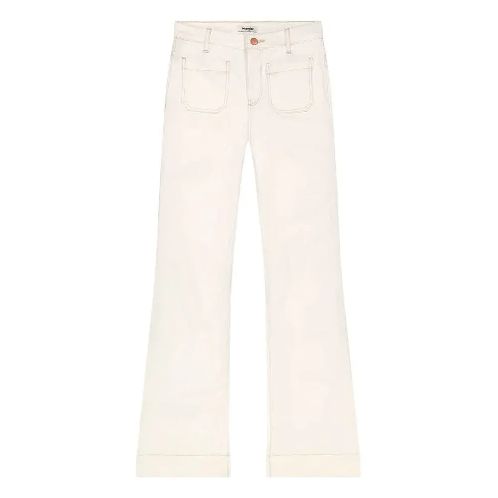 Ощутите ретро-стиль с нашими расклешенными джинсами средней посадки, выполненными из белоснежного денима.
