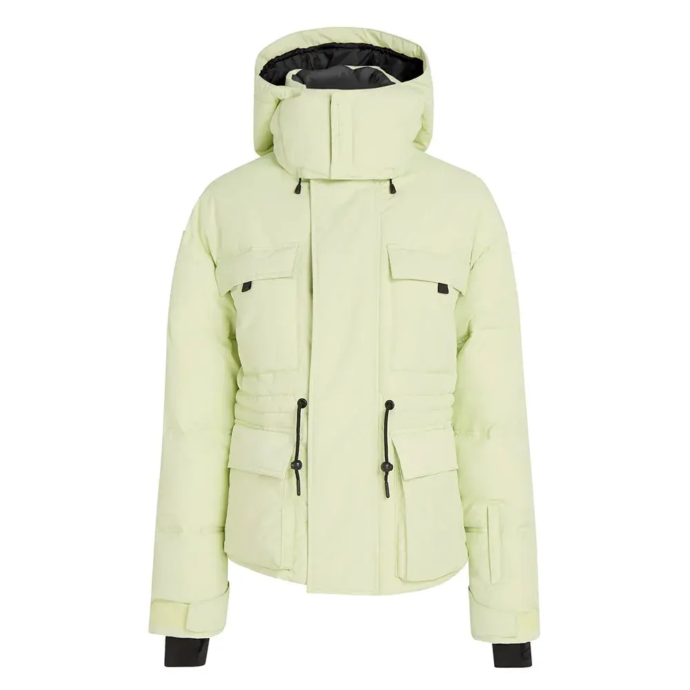 Эта куртка стандартного кроя с прочным водоотталкивающим покрытием без содержания ПФУ, водонепроницаемостью 10K и воздухопроницаемостью 10K имеет капюшон сзади и регуляторы на талии, систему соединения куртки и брюк и пристегивающиеся снежные гетры.
