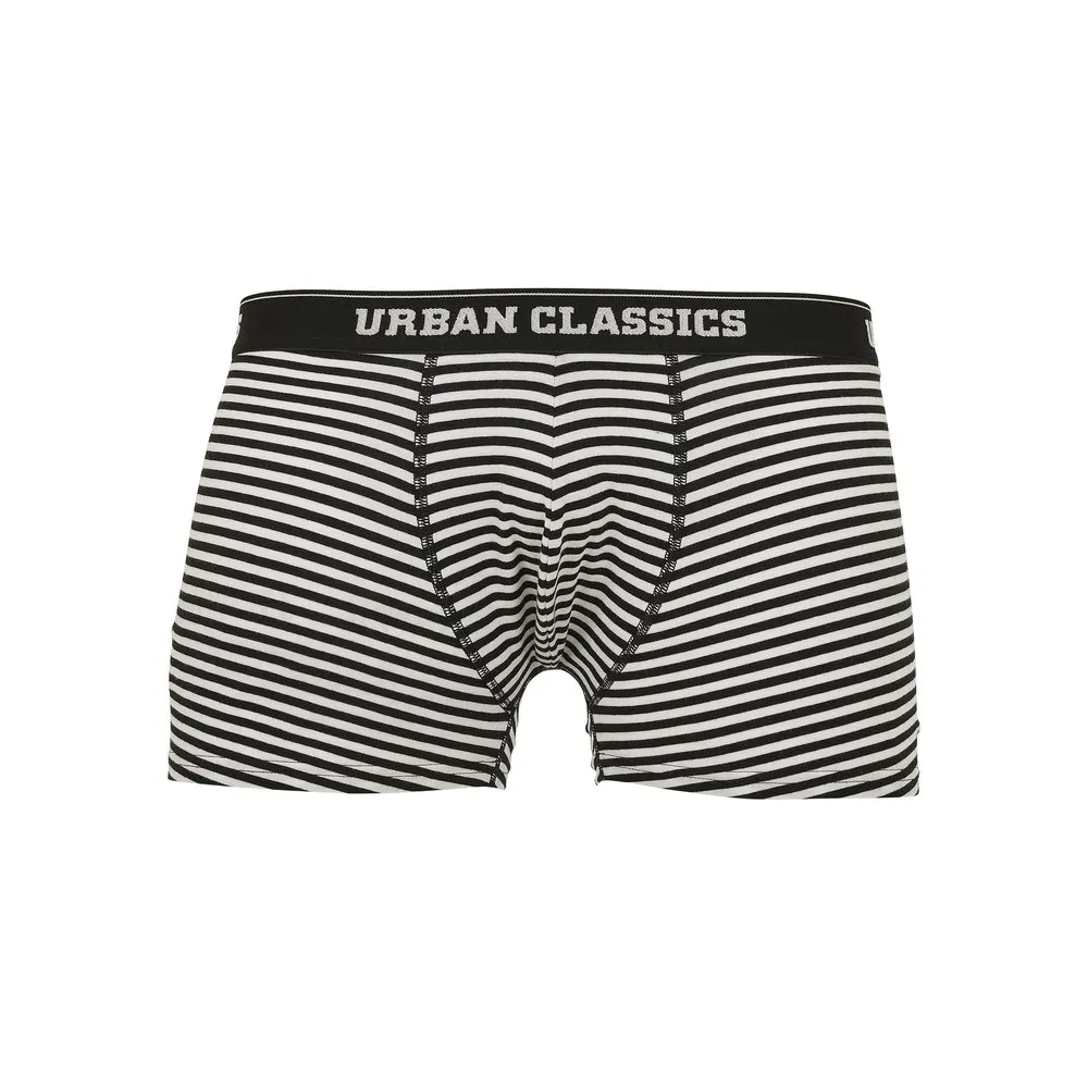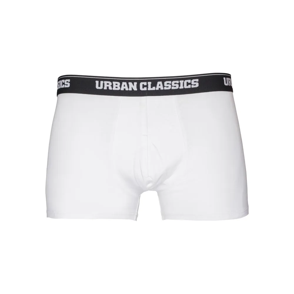 Пакет трусов-боксеров «пять в одном» Urban Classics предлагает выбор функционального мужского нижнего белья в черном, белом и красном цветах. Мотивы трусов-боксеров: две горизонтальные полосы, надпись логотипа Urban Classics по всей поверхности и два однотонных варианта. Все трусы-боксеры имеют черный эластичный пояс с надписью логотипа Urban Classics. Тонкий материал обеспечивает оптимальный комфорт, эластичность трикотажа и гладкую и надежную посадку.