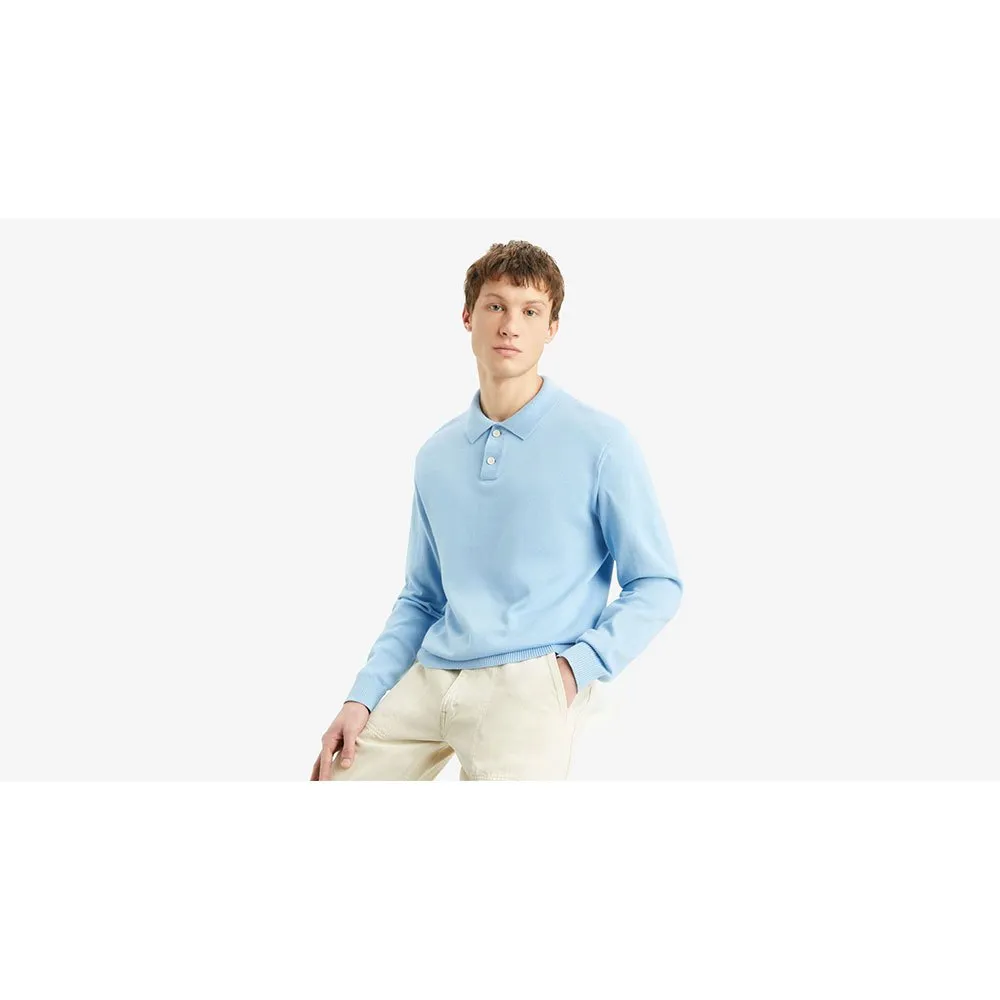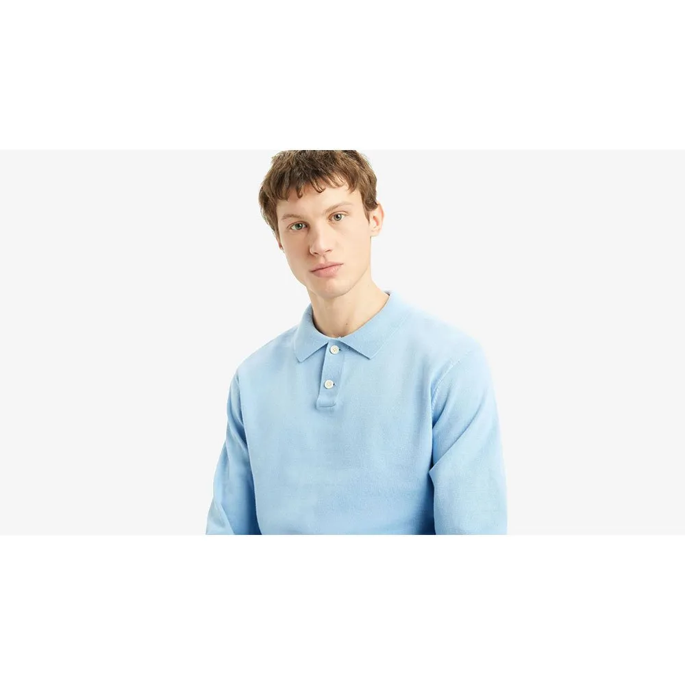 Наше поло-свитер с длинными рукавами имеет планку с двумя пуговицами, удобную стандартную посадку и мягкую ткань.