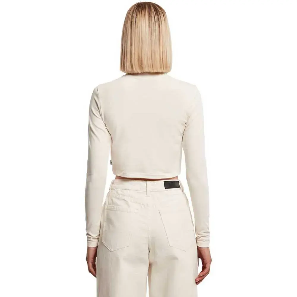 Переосмысленная классика – этот укороченный женский топ с длинными рукавами и небольшой элегантной водолазкой подчеркивает талию и плотно облегает фигуру благодаря высококачественной органической эластичной трикотажной ткани. Естественно, женская рубашка также имеет соответствующую органическую маркировку.