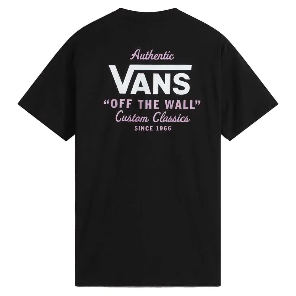 Футболка Holder St Classic — это футболка с короткими рукавами и круглым вырезом, изготовленная из более плотного хлопка, с логотипом Vans спереди и более крупным изображением Vans сзади.