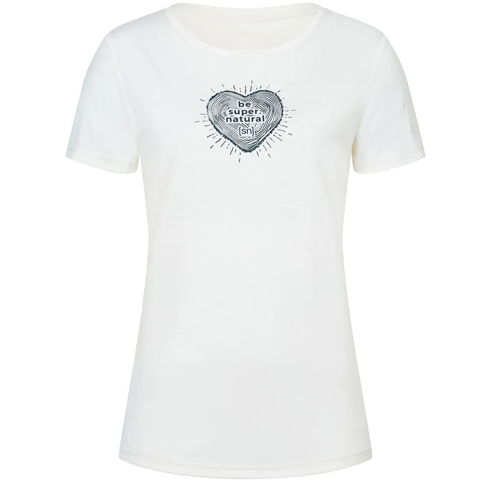 Неброский принт в виде сердца на груди с логотипом super.natural добавляет очаровательный штрих.